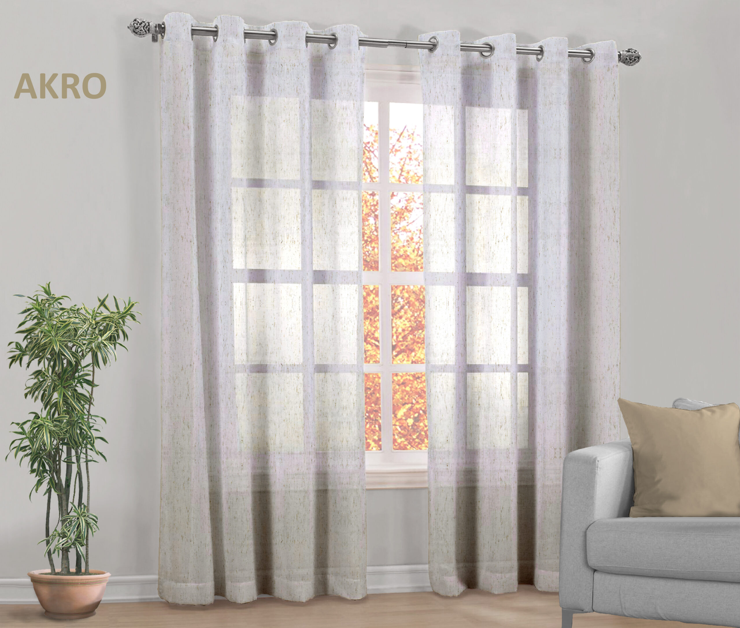 Illumina la tua casa con la tenda moderna AKRO in tessuto semi-trasparente. Il suo colore bianco mélange, leggero e raffinato, lascia filtrare la luce naturale creando un’atmosfera accogliente e armoniosa. Una tenda elegante e versatile, perfetta per arredare con stile ambienti contemporanei e minimal.