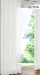 Scopri la tenda ROMEO in tessuto bianco semi-trasparente con righe verticali tono su tono. Elegante e moderna, valorizza la luce naturale e dona agli ambienti un’atmosfera accogliente e raffinata. Ideale per chi cerca tende semplici e luminose per arredare salotti, camere e uffici.