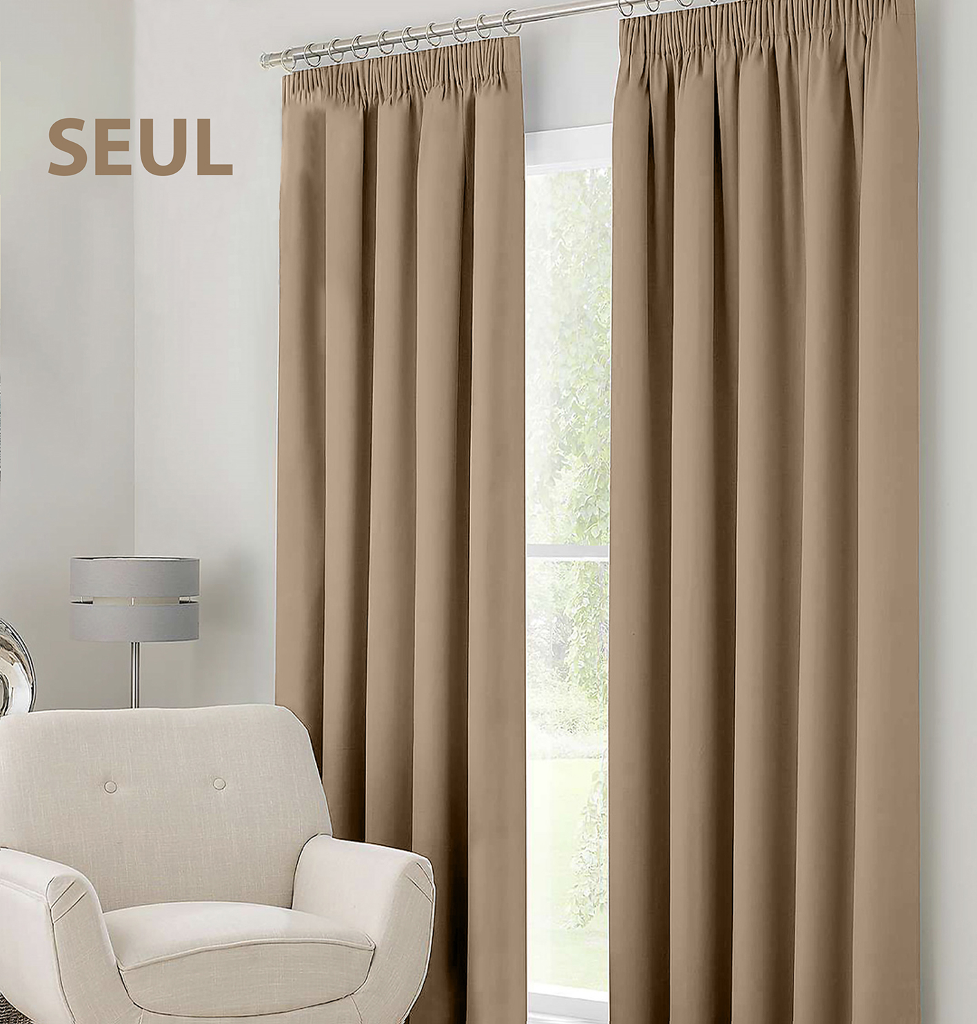 Sobrietà e raffinatezza con la tenda SEUL. Il suo tessuto in tinta unita color tortora regala un tocco di eleganza discreta e senza tempo, ideale per arredare ambienti moderni e classici con stile. Una scelta perfetta per chi cerca armonia e semplicità sofisticata.